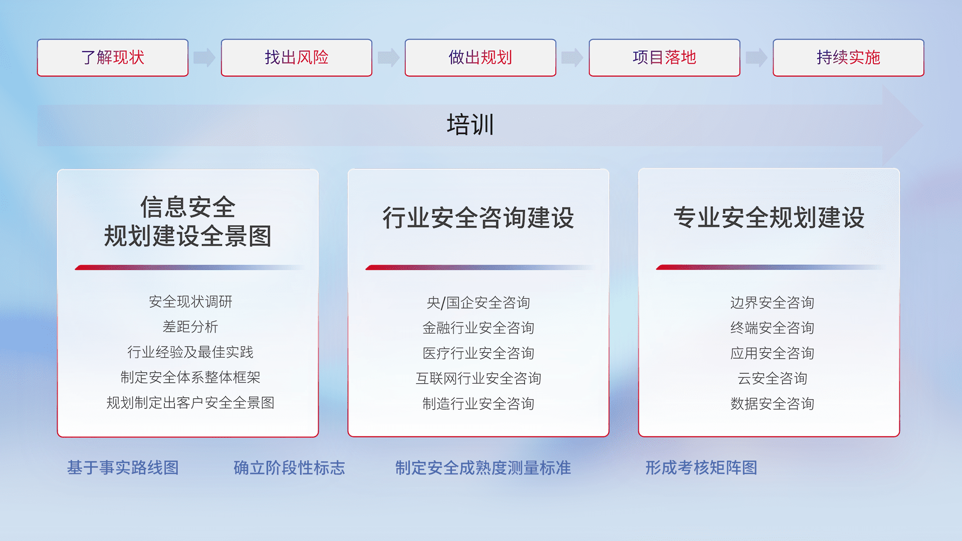 梳理客户信息安全现状调研、、差距分析结果,,结合行业先进经验及最佳实践,,制订客户的信息安全管控体系总结架构,,,最终形成一个完整的客户信息安全规划与建设的全景图。。。。