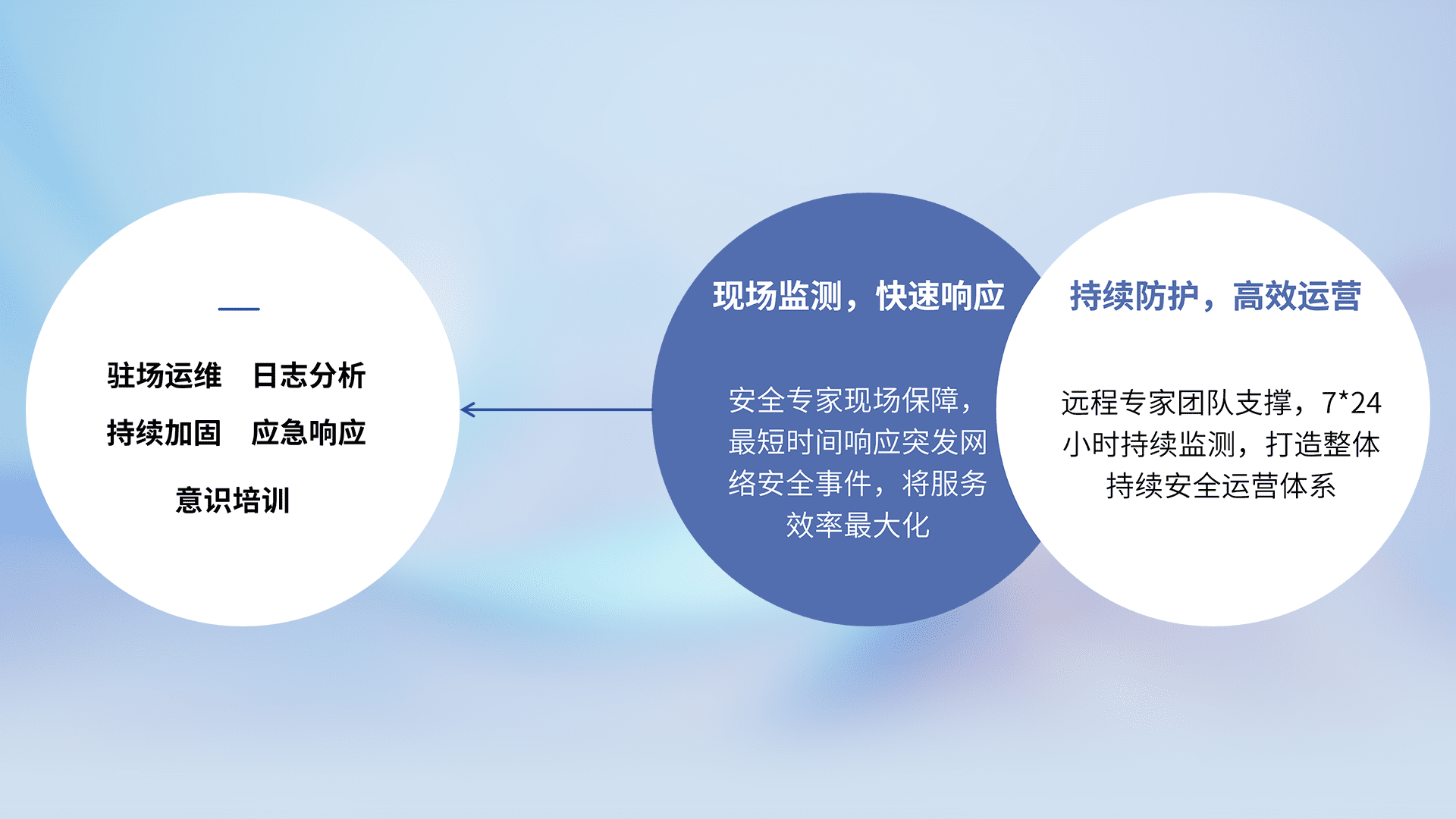 针对客户行业特性,,提供专属的一站式安全管理服务,,帮助客户全面感知网络空间威胁,,,,通过安全专家的线上、、、、线下防护支持,,,,实现风险闭环,,将安全保障常态化,,,为客户打造常态化安全运维运营服务。。。。
